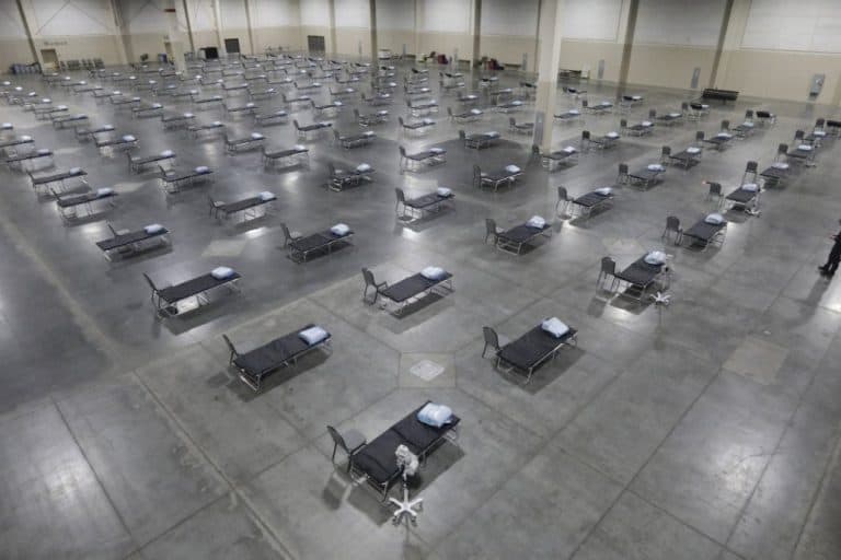 باتت العديد من المستشفيات في الولايات المتحدة على وشك مواجهة نفس المصير. ويصدر معهد القياسات الصحية والتقييم بجامعة واشنطن (IHME) توقعات يومية بشأن الضغط الذي ستشكله الجائحة على نظام الرعاية الصحية في الولايات المتحدة خلال الأشهر الأربعة المقبلة. ويستخدم المعهد أحدث البيانات الخاصة بقدرات كل ولاية من حيث وحدات العناية المركزة وعدد أسِرَّة المستشفيات، فضلاً عن سياسات الابتعاد الاجتماعي المُطبقة فيها، بما في ذلك إغلاق المدارس وأوامر البقاء في المنزل وإغلاق المؤسسات التجارية غير الضرورية وقيود السفر. وقد تم تصميم نموذج أثر الابتعاد الاجتماعي باستخدام البيانات المتعلقة بكيفية استجابة الفيروس لمثل هذه التدابير في أماكن أخرى.