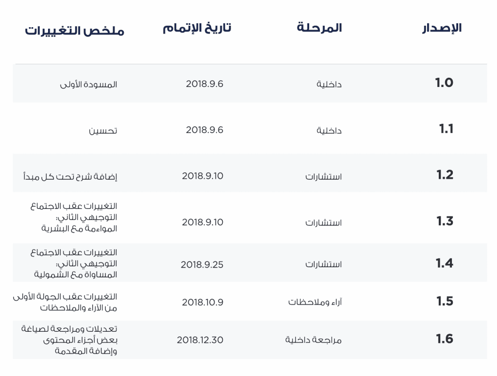 وقد تم بناء المبادئ والإرشادات في دبي الذكية باستخدام مقارنات معيارية دولية، وبالتواصل وجمع آراء الشركاء الاستراتيجيين من الجهات الحكومية الاتحادية والمحلية مثل هيئة تنظيم الاتصالات، مركز دبي للأمن الإلكتروني، هيئة الصحة في دبي، هيئة الطرق والمواصلات، بلدية دبي، هيئة كهرباء ومياه دبي، دائرة الأراضي والأملاك، وشركة اتصالات، بالإضافة إلى كبرى شركات التكنولوجيا بما في ذلك مايكروسوفت، آي بي إم، جوجل، وبي دبليو سي. وقد مرت هذه المبادئ بعدة إصدارات ومسودات حتى وصلت إلى الإطلاق أمس، في 8 يناير 2019.