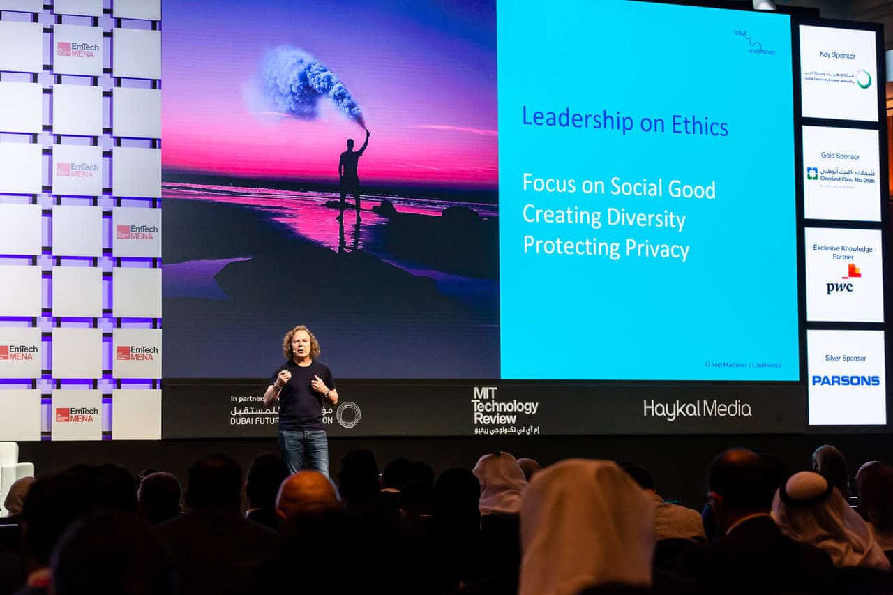 وفي اليوم الأول من فعاليات مؤتمر إيمتيك مينا في دبي الذي صادف يوم الإثنين 4 نوفمبر الماضي، افتتح الجلسة التي حملت عنوان "الذكاء الاصطناعي ومستقبل العمل - الجزء الأول" جريغ كروس، المؤسس المشارك لشركة سول ماشينز، موضحاً أننا -بصفتنا بشراً- نعيش في حقبة سنقضي فيها المزيد من وقتنا في التفاعل والتخاطب مع الآلات؛ لذلك فقد شكّلنا في مخيلتنا تصورات محتملة عما ستبدو عليه. ويصف كروس أحدَ هذه التصورات قائلاً: "روبوتات شريرة قادمة للنَّيْل منا، لتسرق وظائفنا، وتقضي علينا". ويضيف: "أو ربما أن المستقبل الذي سنعيش فيه سيكون عالماً تبدو فيه هذه الآلات أكثر ألفة ووداً، وشبيهة بنا".