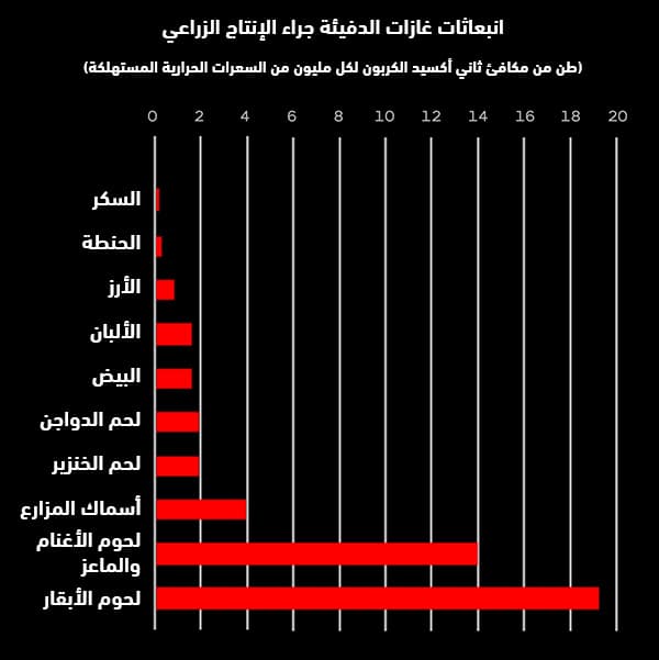 تفاوت الانبعاثات المرتبطة بالأطعمة المختلفة