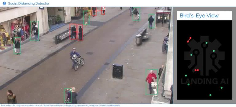 قامت شركة لاندينج إيه آي Landing AI التي أسسها آندرو إن جي Andrew Ng ببناء أداة جديدة لمراقبة مكان العمل يمكنها إصدار تنبيه عندما يقترب أي شخص من زميله بأقل من المسافة الموصى بها.