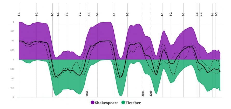 وهنا يأتي دور بيتر بليشاك في الأكاديمية التشيكية للعلوم في براغ، حيث يقول إنه تمكن من حل المشكلة باستخدام التعلم الآلي لتحديد المؤلف الحقيقي لكل سطر من المسرحية تقريباً، ويقول: "تدعم نتائجنا إلى حد كبير التقسيم المتعارف عليه للمسرحية بين ويليام شكسبير وجون فليتشر، الذي اقترحه جيمس سبيدينج".