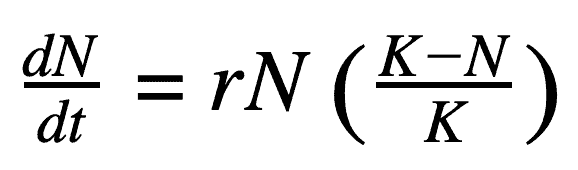 يُمثل الرمز K في المعادلة السابقة سعة الحمل، بينما يمثل الرمز N العدد الأولي للتجمع السكاني ويُمثل الرمز r معدل النمو، وأخيراً يمثل الحد dN/dt معدل الزيادة الحاصلة على عدد أفراد التجمع السكانيّ.