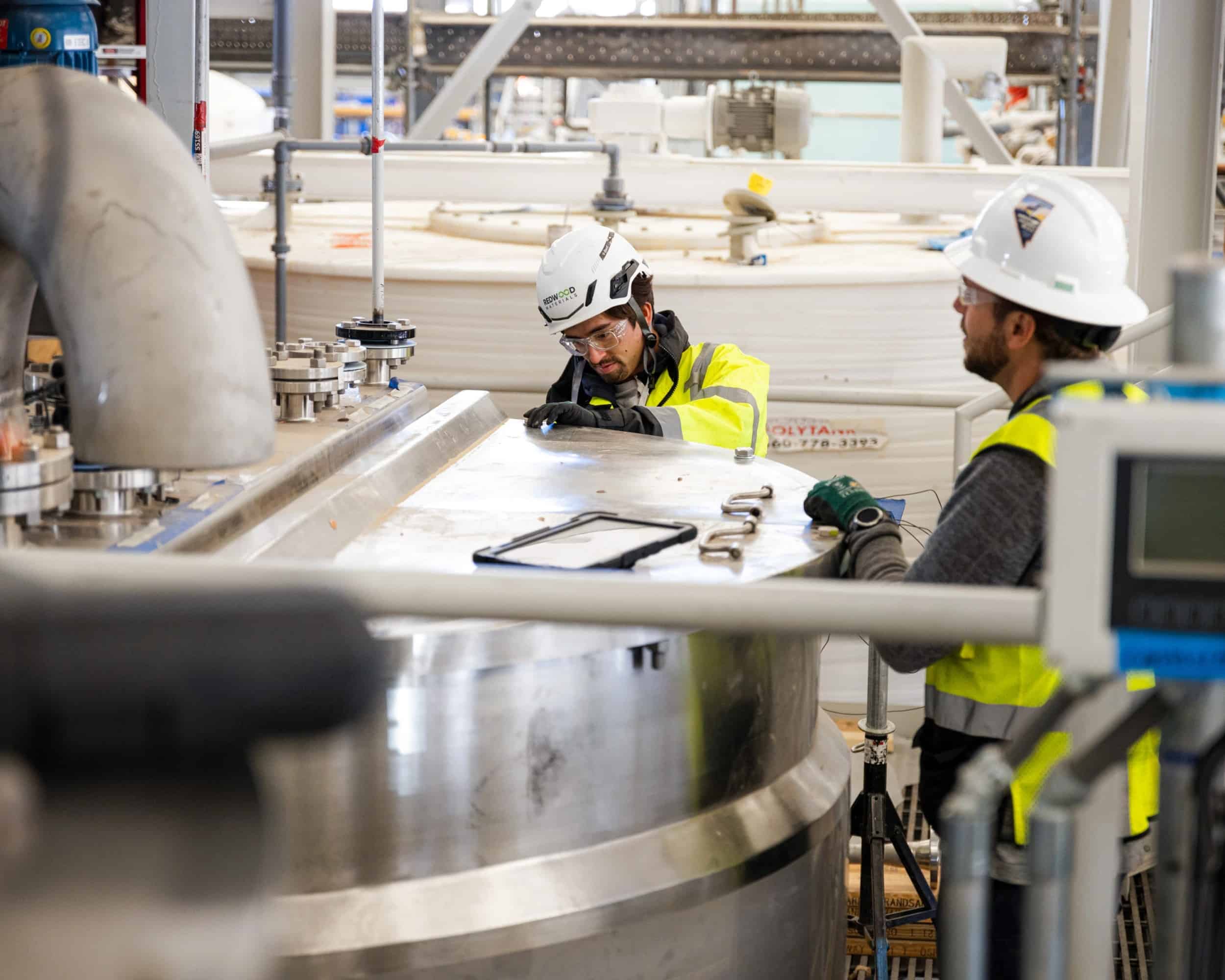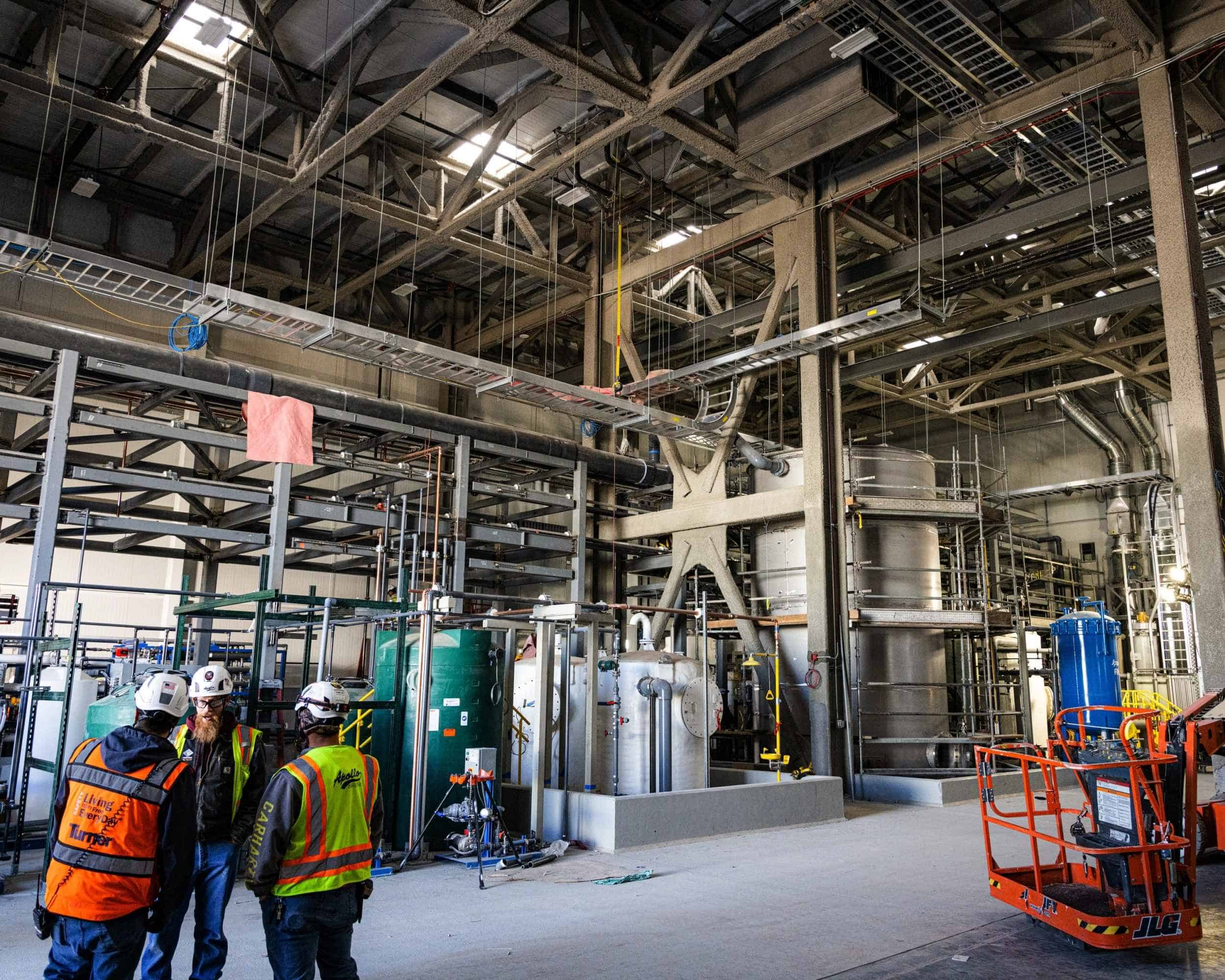 وقد اصطحبتني مديرة قسم التعدين الرطب في ريدوود، ماري لو ليندستروم، في جولة في المختبر التجريبي في مدينة كارسون، والذي يشبه مكاناً لتصنيع المشروبات، حيث تنتشر التجهيزات المصنوعة من الفولاذ المقاوم للصدأ (الستانلس ستيل) عبر غرفة ضخمة. وقد كان الباحثون مجتمعين حول حاسوب وأحد الخزانات المعدنية الكبيرة.