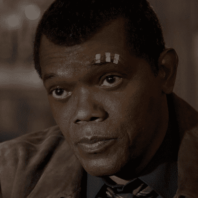 وفي الأسفل: صورة للممثل سامويل جاكسون من فيلم "كابتن مارفل Captain Marvel"، إستوديوهات مارفل، 2019.