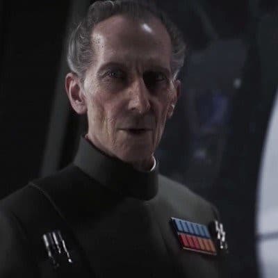 وفي الأسفل: لقطة من فيلم "روج ون: قصة من حرب النجوم Rogue One: A Star Wars Story" إنتاج شركة لوكاس فيلم، 2016.