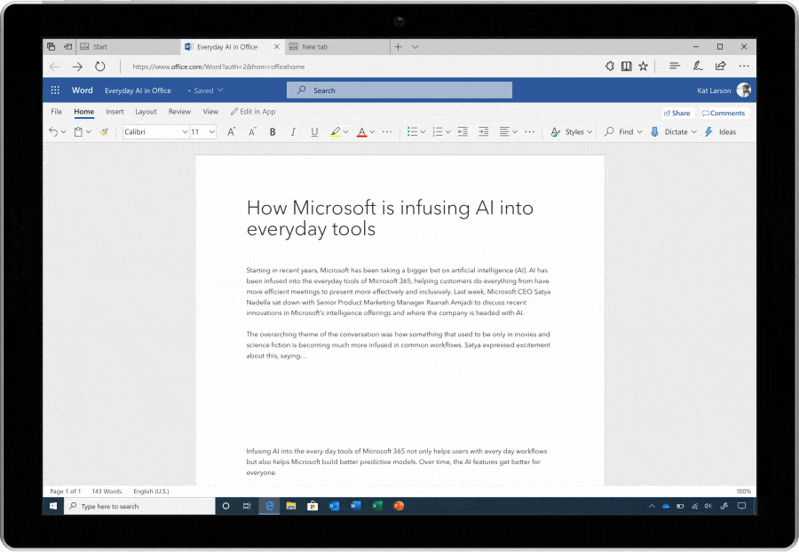 وأخيراً، قالت الشركة إن هذه الميزات مدعومة في متصفحات مايكروسوفت إيدج وجوجل كروم، وإنها تعمل على إتاحتها على نسخة الهواتف المحمولة من تطبيق وورد بحلول نهاية العام. ورغم أن تحويل الصوت إلى نص لا يدعم حالياً إلا اللغة الإنجليزية، لكن الشركة أكدت أنها تعمل على توفير دعم لغات أخرى في المستقبل.