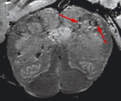 ثم فحص الباحثون بعد ذلك هذه البقع عن كثب تحت المجهر، ووجدوا أن البقع المضيئة تحتوي على أوعية دموية أرق من المعتاد وتُسرب في بعض الأحيان بروتينات الدم إلى الدماغ، وهو ما أدى على ما يبدو إلى حدوث استجابة مناعية. وفي المقابل، احتوت البقع الداكنة على أوعية دموية متخثرة ومُسربة لكنها لم تؤد إلى حدوث استجابة مناعية.