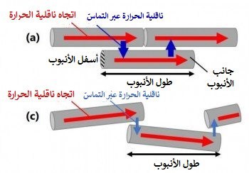 وسبب عدم التناظر بسيط؛ فعندما تكون الأنابيب النانوية في حالة تماسٍّ حراري من الطرف إلى الطرف، فإن الحرارة تنتقل بسهولةٍ من أحد الطرفين إلى الآخر. لكن هذه الأنابيب ليست في وضعية تماسٍّ حراري جيدة على طولها، نظراً لكون أثر التماسّ ضئيلاً بالنسبة للأنابيب المتجاورة.