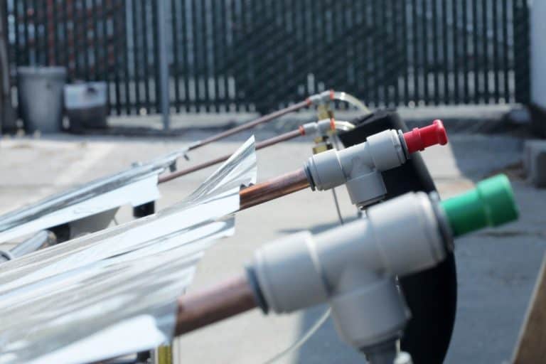 كانت مائلة باتجاه الشمس، ومغطاة بما بدا كأنه رقائق ملساء من الألمنيوم، ومتصلة بإطار معدني يحمل مجموعة متراصفة من الأنابيب والمواسير ومقاييس الحرارة.