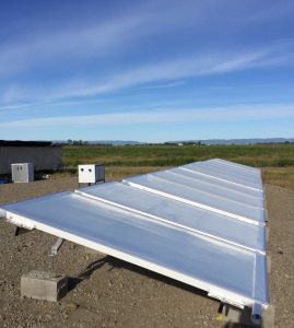 وقد أجرت الشركة تجربة ميدانية لأحدث أجيالها من الألواح قبل عام من الآن تقريباً، في دافيس بولاية كاليفورنيا -والتي تبعد حوالي ساعتين عن بورلينغامي- في منطقة سنترال فالي المنخفضة عن سطح البحر، بهدف تقييم التكنولوجيا كطريقة لتعزيز كل من أنظمة التكييف الهوائي والتبريد التجاري.