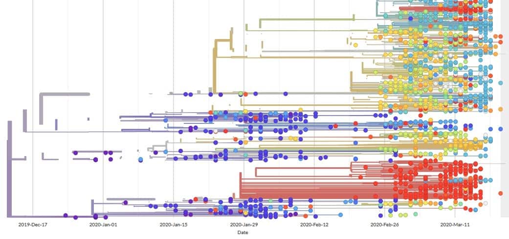عمليات التنقيب عن المعلومات ضمن البيانات الجينية الخاصة بفيروس كورونا ليست الأولى من نوعها؛ إذ مارس العلماء نفس النشاط سابقاً مع أوبئة أخرى مثل سارس وإيبولا وحمى غرب النيل، ولكن هذا الجهد بقي محصوراً ضمن الأوساط العلمية، بينما الآن فإننا سنجد أن الشجرة الوراثية الخاصة بتطور طفرات فيروس كورونا أصبحت في كل مكان على مواقع التواصل الاجتماعيّ، وذلك بسبب توافر الخرائط الجينية على موقع Nextstrain وإمكانية مشاهدتها ومشاركتها من أي شخص متصل بالإنترنت. يستخدم العلماء البيانات المتوافرة على هذا الموقع لأغراض بحثية مرتبطة بتعقب انتشار فيروس كورونا المستجد وفهم سلوكه، وهو يضم نتائج عمليات السلسلة الجينية لطفرات الفيروس من 36 دولة حول العالم.