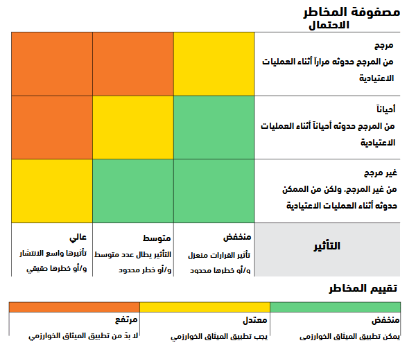 وبناءّ على تصنيف مصفوفة المخاطر، يتم تحديد أهمية تطبيق الميثاق من عدمه.