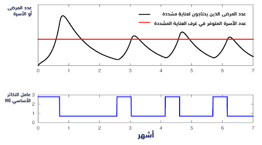 تطبيق مبدأ التغذية الراجعة عبر فرض قيود الحجر الصحيّ بشكلٍ خطوي ومتدرج سيؤدي للحفاظ على طاقة المستشفيات الاستيعابية حتى لو لم ينخفض عامل التكاثر الأساسيّ.