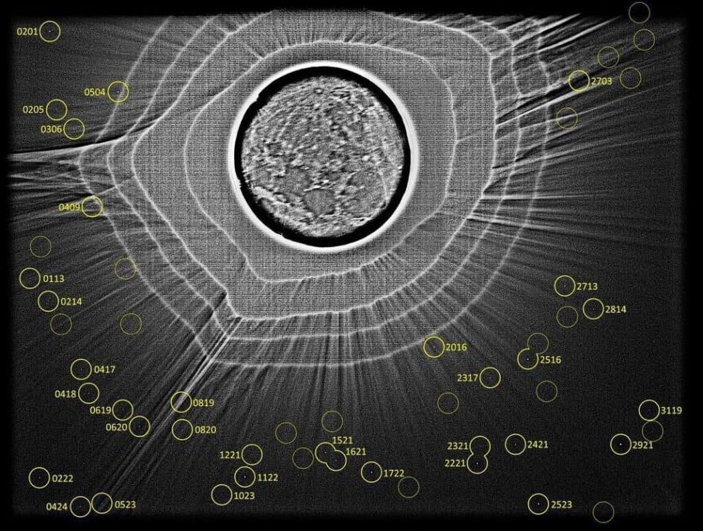 ومن حسن الحظ أن دايسون كان محترفاً في هذه المسائل، فقد كان عمله يتضمن دراسات دقيقة لمواضع النجوم وتغيراتها الصغيرة. وقد استخدم أداة تسمى برغي الميكرومتر لقياس المسافة بين نقطة وأخرى على الصفيحة.