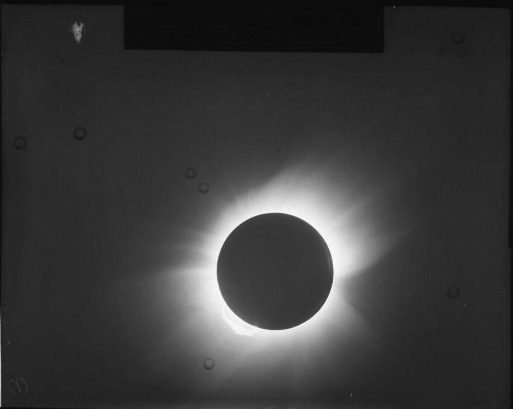 وفي العام 1919، نظّم الفلكيان الإنجليزيان آرثر إيدينجتون وفرانك دايسون بعثتين إلى جزيرة برينسيب قرب ساحل أفريقيا وسوبرال في البرازيل، على الترتيب، للتحقق من صحة عمل أينشتاين. وصادف اليوم المشهود تاريخ 29 مايو، وعندما نشر الفلكيان نتائجهما، تغير العالم كلياً، أو -على الأقل- تغير فهمنا له.