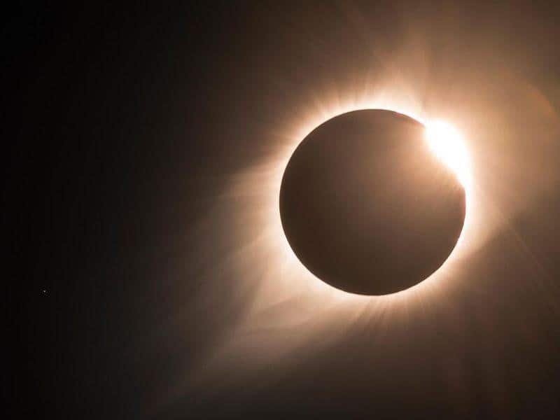 عندما أعتمت سماء الصباح فوق غرب ولاية أوريجون، دخلت حيوانات الألباكا الثلاثة التي يمتلكها ريتشارد بيري إلى حظيرتها. وهناك أصيبت الحيوانات بالتوتر بسبب خفوت الضوء والجمهور الصغير الذي تجمع داخل حظيرة بارني، والمؤلَّف من أشخاص من خارج البلدة يحملون نظاراتهم الشمسية المصنوعة من الورق المقوَّى وطائراتهم المسيرة رباعية المراوح. في تلك الأثناء، وأمام أنظار هذا الجمهور وغيره، ومن دون أي اعتبار لذعر حيوانات الألباكا المسكينة، كانت تدور رقصة باليه سماوية نادرة بين الشمس والقمر.