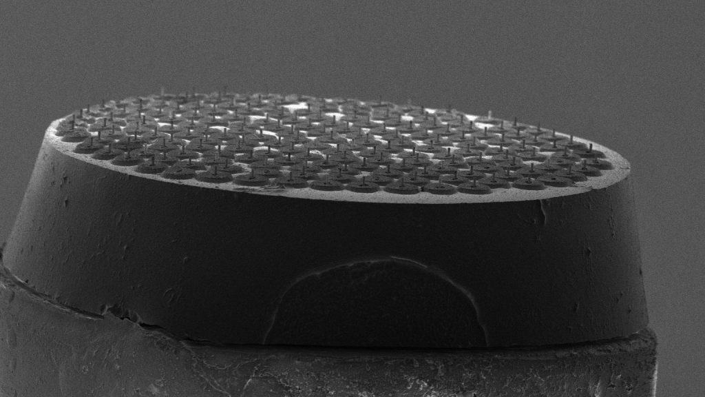 وقال أنجل بأن فريقه قام بطلب لفات من الأسلاك ثم بجمع الشرائط مع بعضها في أكبال تبلغ ثخانتها 10 آلاف سلك. تمكّن الفريق من جعل أحد طرفي الأسلاك مدبباً، وخلق سطح يشبه الفرشاة يمكنه اختراق الدماغ بشكل مماثل للإبر. وقال أنجل بأن ثخانة الأسلاك تمت معايرتها بحيث تكون قوية بما يكفي لكيلا تتعرّض للانثناء أثناء دفعها إلى الدماغ، ولكن رقيقة بما يكفي لعدم إحداث الكثير من الضرر.