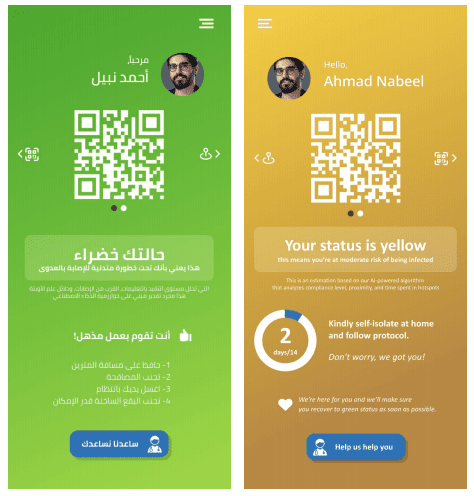 ومن الجدير بالذكر أن خوارزمية الذكاء الاصطناعي تستمر في تحديث درجة الخطورة بناء على أي معطيات جديدة؛ فعلى سبيل المثال، إذا كانت حالة المستخدم باللون الأصفر ثم أجرى اختبار الإصابة وتبين أنه غير مصاب، سيتم عندها تلقائياً تحديث حالته إلى اللون الأخضر. أو إذا كانت حالته باللون الأخضر ثم التقى بشخص إصابته مؤكدة لدى وزارة الصحة، عندها سيتم تعديل حالته إلى اللون الأصفر أو الأحمر بناء على العوامل المذكورة آنفاً.