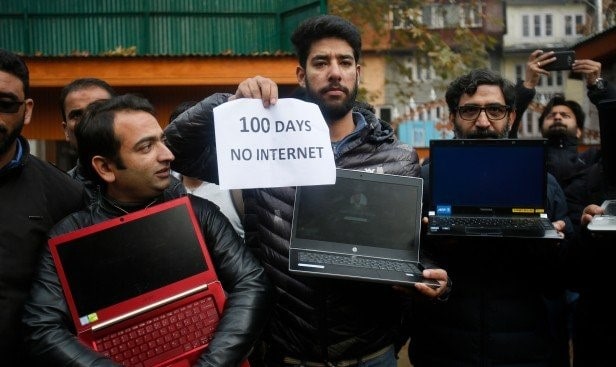 حدث الفصل الكبير للإنترنت في الهند في ديسمبر بعد أن بدأ السكان في شمال البلاد بالتظاهر اعتراضاً على أحد قوانين المواطَنَة المجحف بحق المسلمين. وفي مقاطعة كشمير المضطربة، كان الاتصال بالإنترنت مقطوعاً منذ أغسطس، ويضطر البعض للسفر مسافةَ عدة كيلومترات فقط لتفقد البريد الإلكتروني.