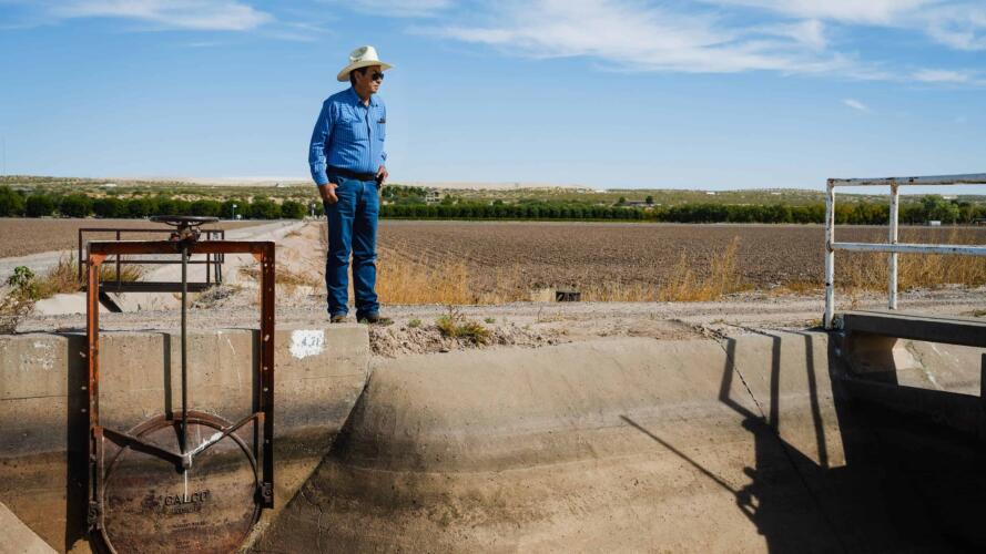 ويستمد تيريس وجيرانه معظم الماء الذي يروون به محاصيلهم من نهر ريو غراندي، الذي ينحدر ملتوياً من الجبال في جنوب كولورادو عبر نيو مكسيكو وعلى طول الحدود بين تكساس والمكسيك. ولكن، وفي السنوات المشابهة لهذه السنة، فإن نسب المطر والثلوج قليلة، والماء شحيح. يستطيع تيريس ضخ بعض المياه الجوفية لتعويض شيء من النقص، ولكنه أمر مكلف، كما أن المضخات غير موجودة في جميع الحقول.