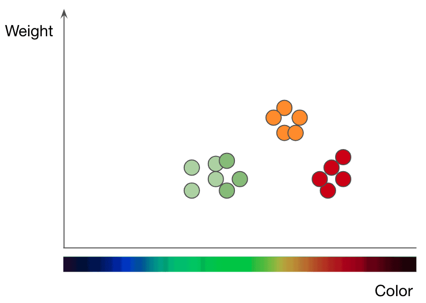 ولفهم عمل كي إن إن، يمكن أن نأخذ تصنيف الفواكه كمثال؛ فإذا رغبنا في تدريب نموذج كي إن إن على استيعاب الفرق ما بين التفاح والبرتقال، يجب أولاً أن نختار الميزات التي نريد استخدامها لتمثيل كل نوع من الفاكهة. سنفترض أننا اخترنا اللون والوزن، ولهذا، بالنسبة لكل تفاحة وبرتقالة، يجب أن نلقم نظام كي إن إن نقطة بيانات واحدة تمثل اللون وتلعب دور الإحداثي إكس، والوزن للإحداثي واي. بعد ذلك، تقوم خوارزمية كي إن إن برسم جميع نقاط البيانات على شكل بياني ثنائي الأبعاد، وترسم حداً يفصل ما بين التفاح والبرتقال. وحتى الآن، يبدو الشكل البياني مقسوماً بشكل واضح إلى صنفين، وتستطيع الخوارزمية الآن أن تقرر ما إذا كانت نقاط البيانات الجديدة تمثل صنفاً أو آخر وفق موقعها بالنسبة للحد الفاصل.