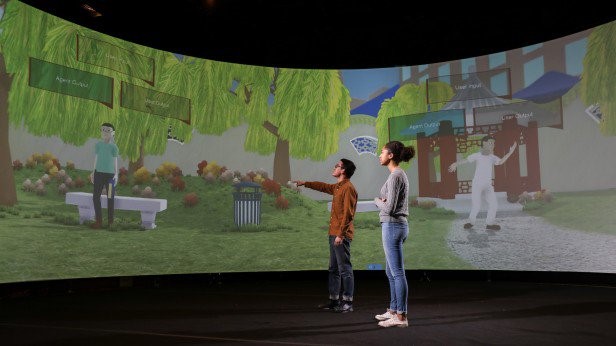 لذلك، وفي عمل مشترك جديد مع قسم الأبحاث في آي بي إم، يقدم معهد رينسلير بوليتكنيك (آر بي آي) -وهو جامعة في تروي بنيويورك- لطلابه الذين يدرسون الصينية خياراً جديداً: بيئة افتراضية محيطة تنقلهم إلى شوارع بكين المزدحمة أو إلى مطعم صيني مكتظ بالزوار. سينخرط الطلاب مع هذه البيئة في المساومة مع باعة الشارع أو طلب الطعام، وستستجيب لهم البيئة في الزمن الحقيقي عن طريق مجموعة من أدوات وقدرات الذكاء الاصطناعي. وعلى الرغم من أن هذه الغرفة ما زالت تجريبية إلى حد بعيد، فسوف تُستخدم للمرة الأولى قريباً ضِمن الحصص الصيفية للجامعة هذا الصيف.