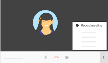 ولتسجيل الاجتماع، انقر على أيقونة النقاط الثلاثة في الزاوية اليمنى السفلية من نافذة الاجتماع، واختر منها "تسجيل الاجتماع". وسيتم إرسال بريد إلكتروني إلى منظم الاجتماع يحتوي رابطاً للتسجيل الذي يتم حفظه في جوجل درايف ضمن مجلد اسمه "تسجيلات ميت".