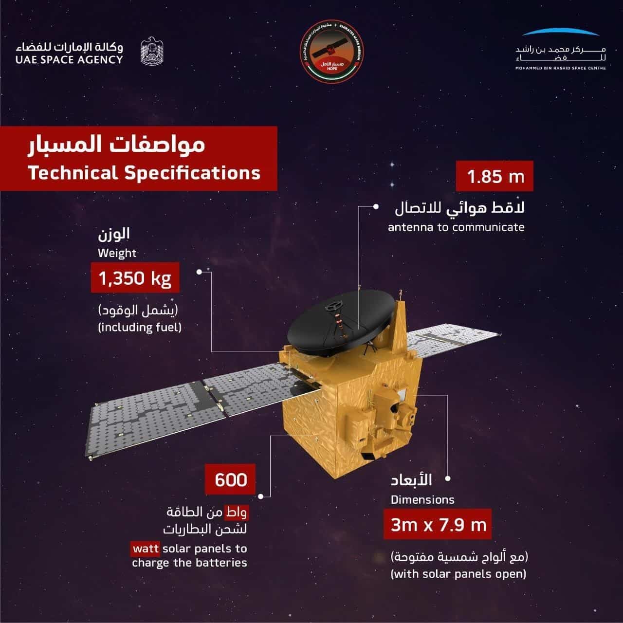 ستنطلق بعثة مسبار الأمل غير المأهولة يوم 20 يوليو لتبدأ رحلة مدتها 7 أشهر تقطع خلالها مسافة 493 مليون كيلومتر حتى تصل إلى المريخ. وإذا سار كل شيء على ما يرام، فسيتزامن وصول المسبار إلى الكوكب الأحمر مع احتفالات دولة الإمارات بمرور 50 عاماً على تأسيسها، وسيشكل وصوله أكبر إنجاز للبلاد في مجال الفضاء بعد إرسال أول رائد فضاء إماراتي إلى محطة الفضاء الدولية في العام الماضي.