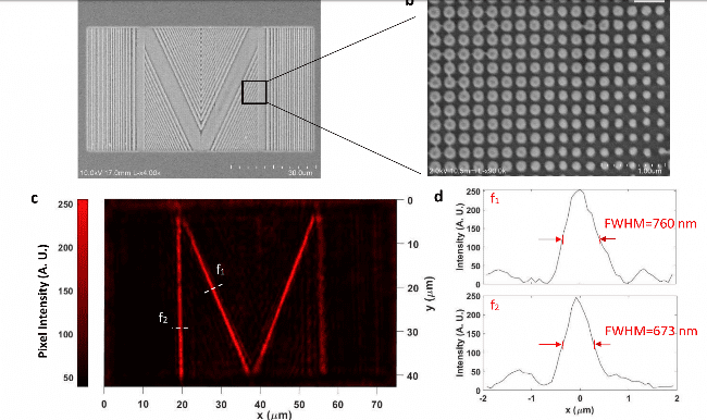 ويوضح يي وزملاؤه هذه التقنية عن طريق إنشاء عدسات فائقة الصغر ذات نمط بؤري على شكل حرف U وحرف M. ويوضح هذا العرض الذي يُثبت المبدأ كيف يمكن دمج الخطوط والمنحنيات لتشكيل أنماط أكثر تعقيداً. ويقولون: "لقد اقترحنا وأظهرنا طريقة جديدة لإعداد عدسات فائقة الصغر تقوم بتركيز الضوء على نمط مصمم بشكل اصطناعي بدلاً من نقطة".