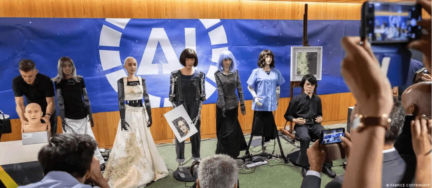 شهدت القمة العالمية للذكاء الاصطناعي من أجل الصالح العام، التي تسعى إلى إبراز إمكانات التكنولوجيا الجديدة لدعم أهداف الأمم المتحدة للتنمية المستدامة، أول مؤتمر صحفي تعقده مجموعة كبيرة من الروبوتات.