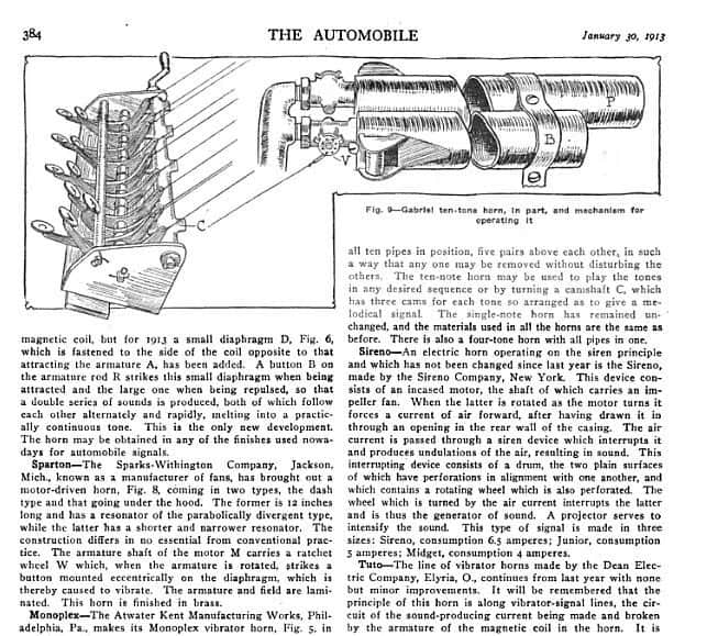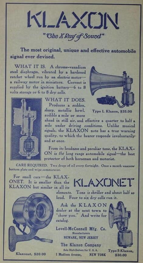 بحلول العام 1912، أصبح البوق أداة التنبيه الأكثر انتشاراً في السيارات في الولايات المتحدة وأوروبا.