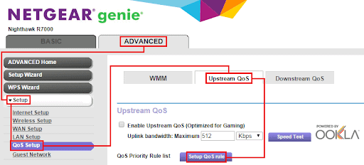 • اضبط جودة الخدمة (Quality of Service) التي تتضمن خيارات تتيح لك منح الأولوية في تحميل البيانات إلى حاسوب العمل، ومنح أولوية أقل لأجهزة الهاتف على سبيل المثال. حتى إن بعض أجهزة التوجيه تتيح فرض قيود معينة على بعض التطبيقات لمنعها من استهلاك حيزٍ كبير من الطيف الراديوي.