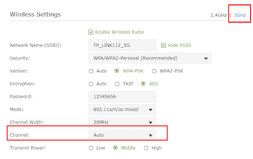• جرب تغيير تردد الإشارة من 2.4 جيجاهرتز إلى 5 جيجاهرتز. وعلى الرغم من أن التردد الأخير لا يؤمن تغطية واسعة لكنه يوفر قوة إشارة أكبر وتداخلاً أقل.