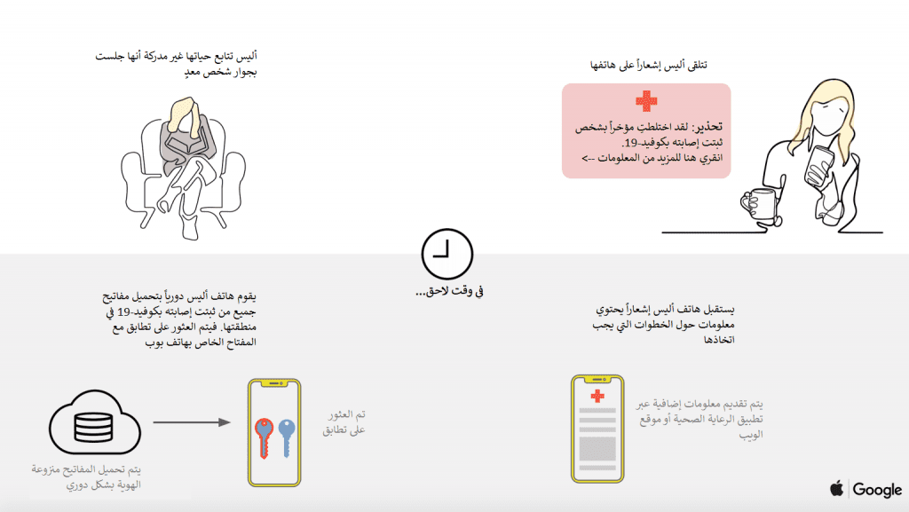 أدت الجهود التي تعتمد على التكنولوجيا المتطورة -خصوصاً في البلدان الآسيوية مثل الصين وسنغافورة وتايوان وكوريا الجنوبية- إلى الكثير من العناوين الصحفية، ولكن عندما ستطلق آبل وجوجل نظامهما لدمج إشعارات التعرض إلى الوباء ضمن هواتفهما الذكية، فسيكون هذا أكبر تطور على مستوى العالم. تعتبر الشركتان مسؤولتين عن بناء البرمجيات لأكثر من 99% من الهواتف في العالم، كما أن 8 من أصل كل 10 أميركيين يمتلكون هاتفاً ذكياً. يمكن للتطبيقات التي تم دمجها مباشرة بنظامي التشغيل آي أو إس وأندرويد -خصوصاً إذا كانت قادرة على تحقيق التواصل بين هذين النظامين- أن تؤدي إلى زيادة كبيرة في قدرة السلطات الصحية على الوصول إلى الجماهير دفعة واحدة.