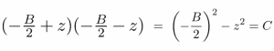 يقول لو: "إذن فنحن نبحث عن عددين من الشكل -B/2±z، حيث z هي كمية غير معلومة مفردة". عندها نستطيع أن نضرب هذين العددين معاً للحصول على التعبير الرياضي لـ C. وبالتعويض نحصل على: