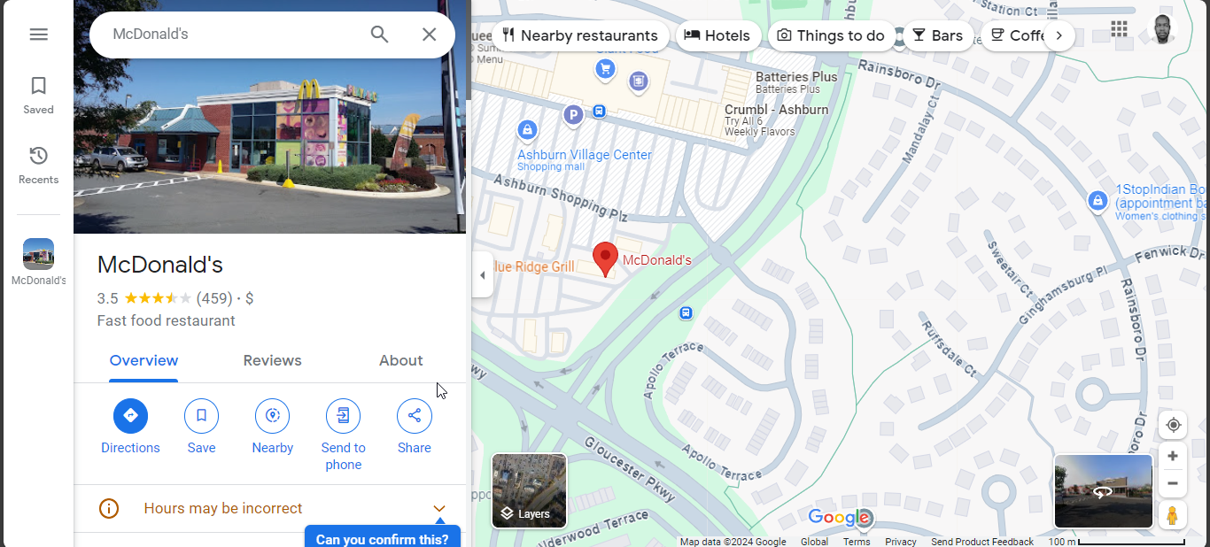 يمكنك أيضاً استخدام إضافة خرائط جوجل للحصول على المعلومات التي تحتاج إليها حول مكان ما وعرضها، على سبيل المثال، إذا سألت "أين أقرب مطعم؟" سيقوم بسحب خريطة تنتشر فيها المطاعم القريبة كاملة بأسمائها وأوصافها وتقييماتها، وبالنقر على إحداها ستُفتح خدمة خرائط جوجل ويمكنك من خلالها الحصول على مزيد من التفاصيل مثل ساعات العمل والقوائم والمراجعات والاتجاهات.