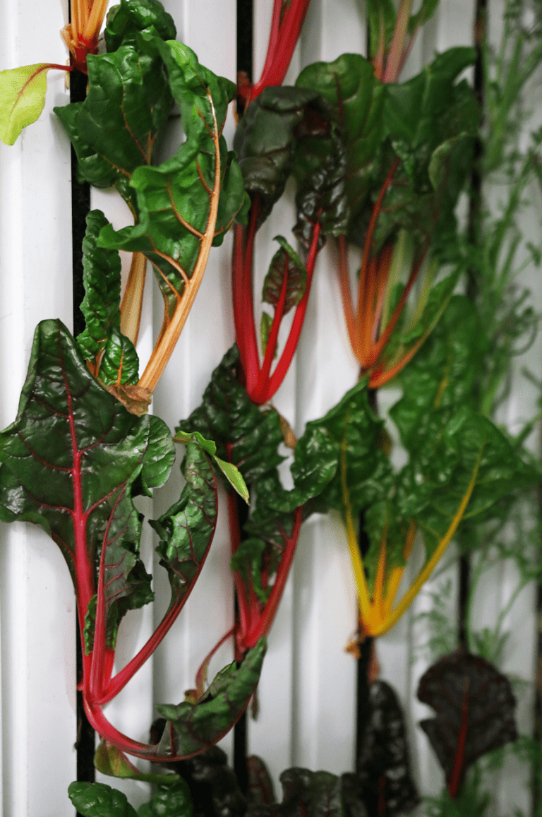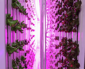تنتج الحاويات في المقام الأول الخضار الورقية، مثل الخس والسلق السويسري، لأنها سريعة النمو ويمكن ربطها ببعضها بإحكام.