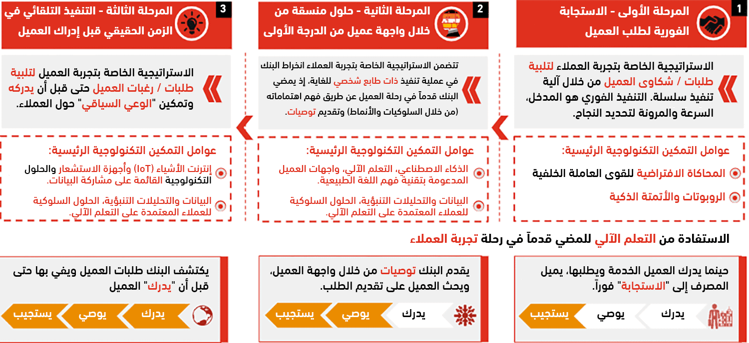 أما البعد الآخر فيتضمن الجمع بين الحلول التقنية المتطورة، بما في ذلك البيانات والتحليلات التنبؤية، والذكاء الاصطناعي والتعلم الآلي، لتوفير قدرة فائقة على فهم الأنماط السلوكية للعملاء. وسواء تعلق الأمر بتذكير عميل كثير النسيان بسداد فواتير المرافق الخاصة به/بها، أو تقديم توصيات بشأن المبلغ الذي ينبغي أن يبدأ في ادخاره كل شهر ليتمكن من شراء السيارة الصديقة للبيئة الصيف المقبل، فإن الأنماط المستمدة من هذا المزيج هي المدخل لبناء حلول شخصية شاملة.