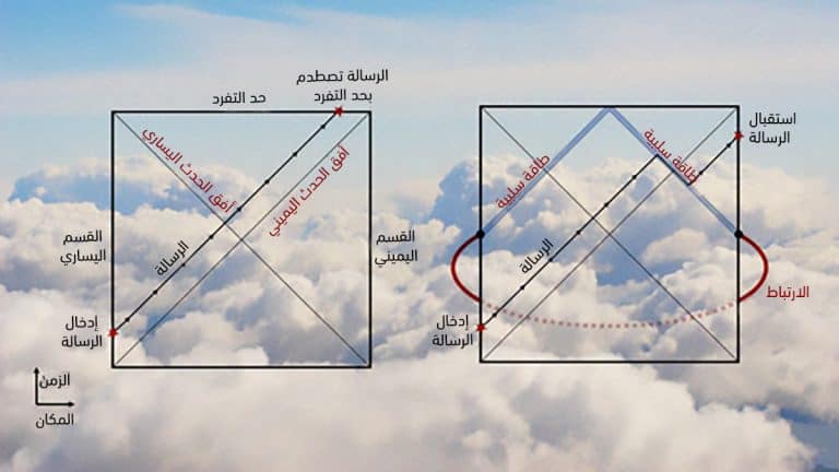 إليك تجربةً ذهنية غريبة؛ تخيَّل سحابةً مكوّنة من الجسيمات الكمومية المتشابكة، بمعنى أنها تتشارك الوجود الكمومي نفسه، ويتَّسم سلوك هذه الجسيمات بالفوضوية. أما الهدف من هذه التجربة فهو إرسال رسالة كمومية عبر هذه المجموعة من الجسيمات؛ أي أنه يجب إرسالها من أحد جانبي السحابة ومن ثم استخراجها على الجانب الآخر.