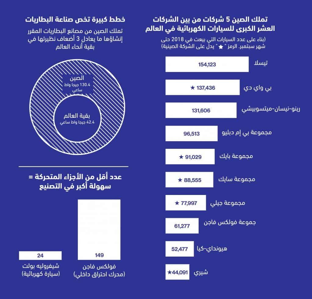 وفي الوقت نفسه، تمكنت الصين من امتلاك سلسلة توريد للتصنيع الإلكتروني قيد التشغيل بفضل السنوات التي قضتها في إنتاج البطاريات والهواتف والأجهزة للعالم.والآن تتبنى الحكومة الصينية عملية التحول من محركات الاحتراق الداخلي إلى المحركات الكهربائية بطريقة لا يمكن لبلد آخر أن يضاهيها؛ فقد جعلت السيارات الكهربائية واحدة من الركائز العشر لخطة الصين الإستراتيجية التي تعرف باسم "صُنع في الصين 2025" -وهي خطة تديرها الحكومة لكي تصبح البلاد رائداً عالمياً في الصناعات ذات التكنولوجيا المتطورة- ووضعت سياسات لتوليد الطلب. ومنذ العام 2013، تم افتتاح ما يقرب من 500 شركة للسيارات الكهربائية في الصين لتلبية تعليمات الحكومة، وللحصول على الإعانات المالية التي يراد بها توليد العرض.