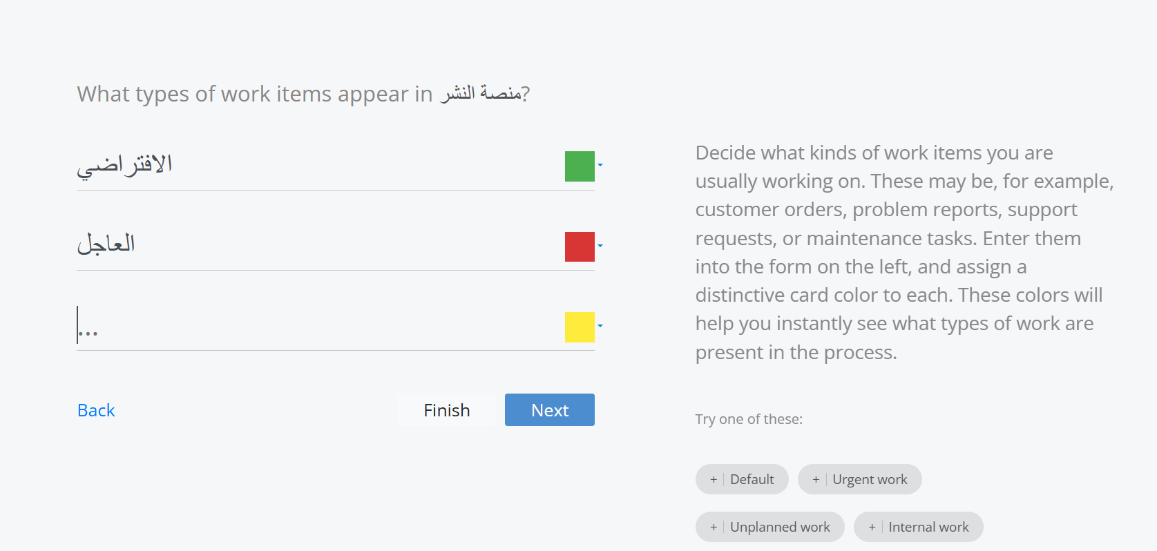 ملاحظة: الحد من العمل الجاري Limiting Work In Progress أو WIP limit يعني تحديد سعة عمود في لوحة كانبان. على سبيل المثال، قد تقرر عدم العمل على أكثر من عنصرين في آنٍ واحد. لذا بمجرد وجود أكثر من عنصرين في عمود واحد، يتوقف عن قبول عناصر جديدة بحيث تركز جهودك كلها على إنجاز عنصر واحد على الأقل من هذا العمود المكتظ أولاً. يساعد تحديد العمل قيد التنفيذ على التحكم في عدد العناصر غير المكتملة لديك قبل قبول عناصر جديدة.