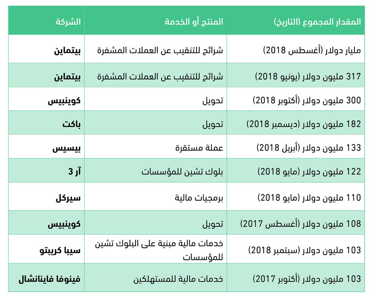 أكبر عشر صفقات رؤوس أموال استثمارية للبلوك تشين (2014- الوقت الحاضر)