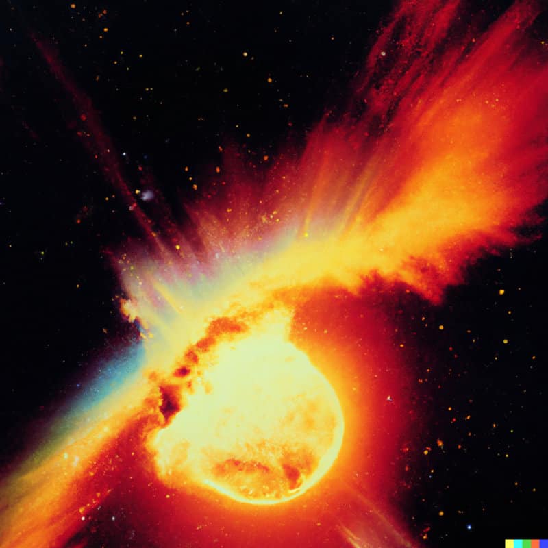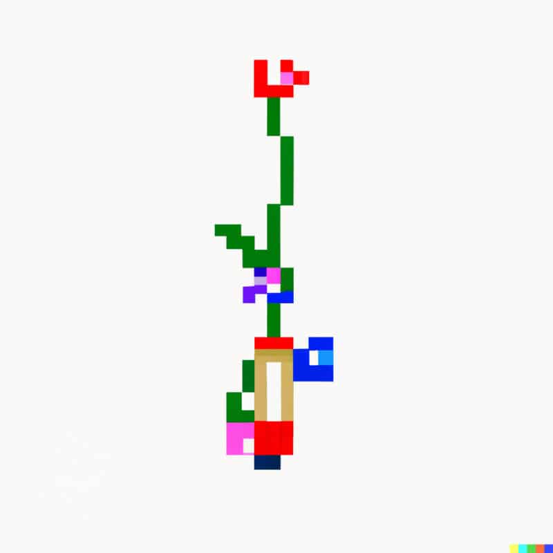 "لقد حاولت تمثيل الذكاء الاصطناعي مجازياً باستخدام التعليمة النصية "the Big Bang" (الانفجار الكبير) وحصلت على هذه الأشكال المجردة الشبيهة بالفقاعات (يمين)" ولم يكن هذا ما أردته بالضبط، ولهذا قررت إضافة المزيد من التفاصيل بعبارة ’explosion in outer space 1980s photograph‘ (انفجار في الفضاء الخارجي في صورة فوتوغرافية من الثمانينيات) (يسار)، وهو ما أعطى نتيجة تميل إلى المبالغة. كما حاولت زراعة بعض النباتات الرقمية باستخدام عبارة ’plant 8-bit pixel art‘ (نبات مرسوم بفن رقمي باستخدام بكسلات 8 بت) (في الوسط)".