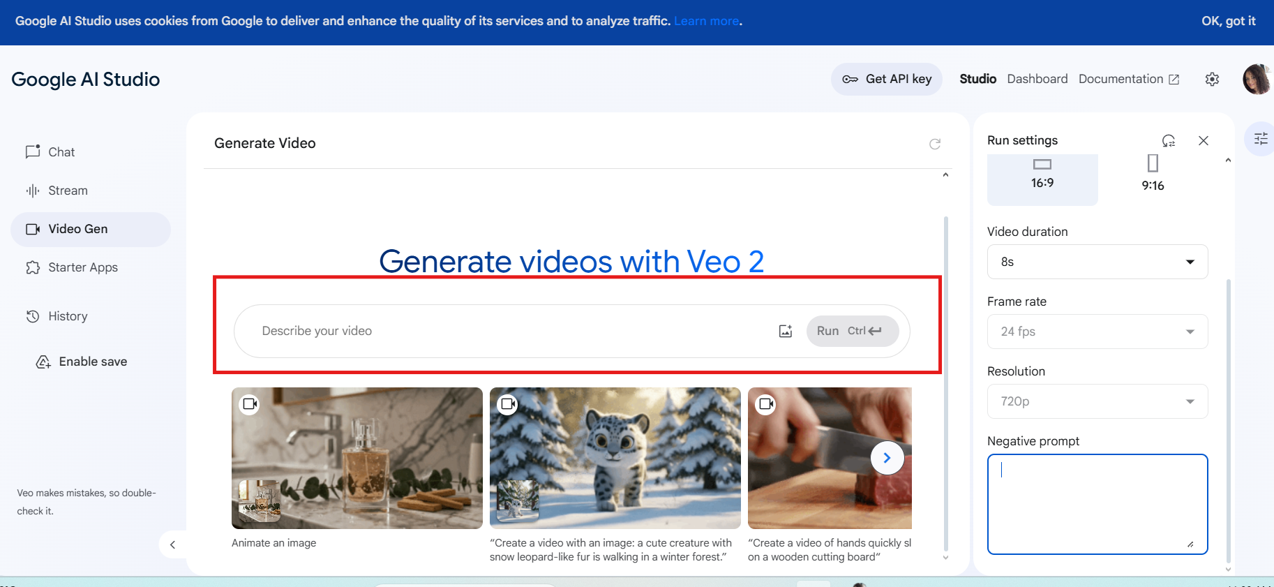 في البداية، يجب الدخول إلى منصة جوجل أيه آي استوديو من الرابط.