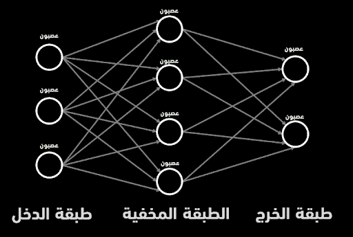 تتألف الشبكة العصبونية من عصبونات مرتبة ضمن طبقات، بحيث يتصل كل عصبون في كل طبقة مع عصبونات الطبقة السابقة والتالية.