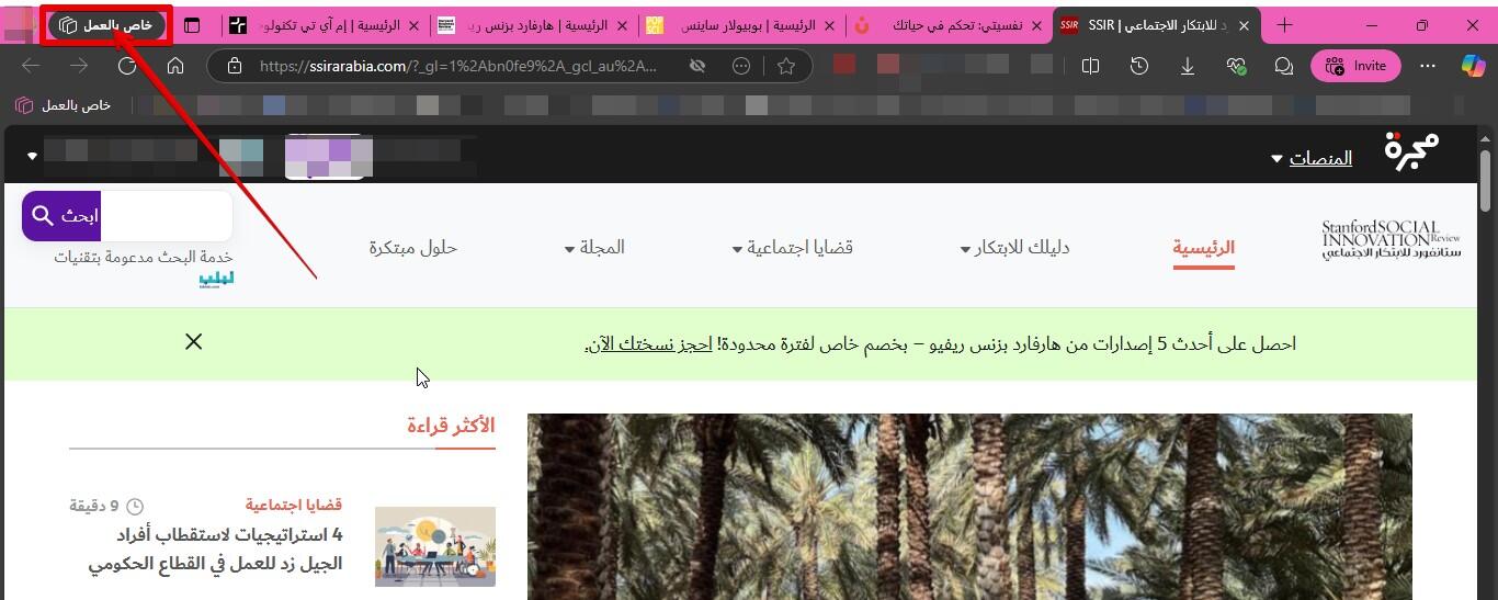 مساحات العمل لإدارة أنشطة التصفح المختلفة