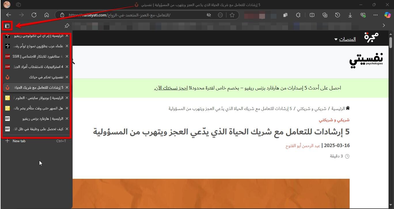 ترتيب علامات التبويب عمودياً لرؤية أفضل