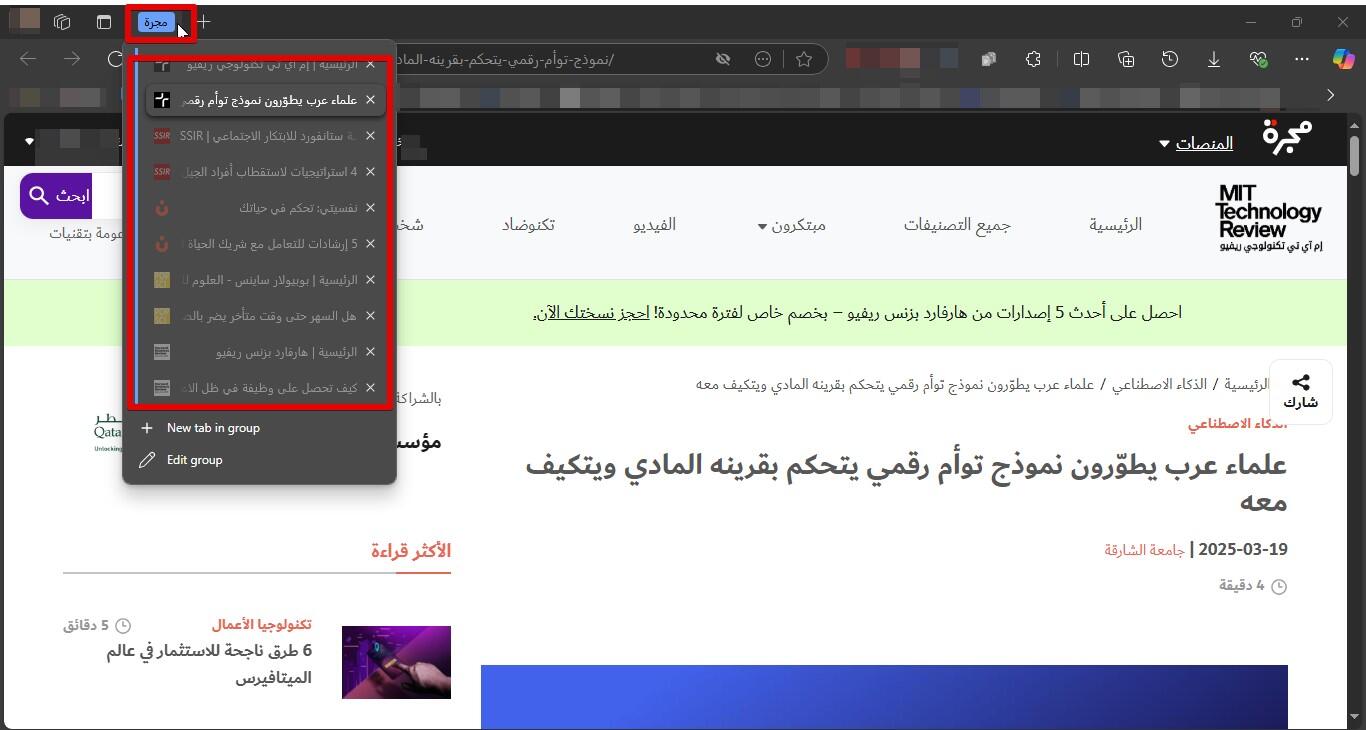 بينما تقدّم ميزة مجموعات علامات التبويب (Tab Groups) للمستخدم تجميع علامات التبويب ذات الصلة معاً، سواء كانت معروضة أفقياً أو رأسياً، كما يمكن تخصيص أسماء لمجموعات علامات التبويب واختيار لون محدد لها، ما يسهّل تحديد مجموعات صفحات الويب المختلفة والتنقل بينها بصرياً.