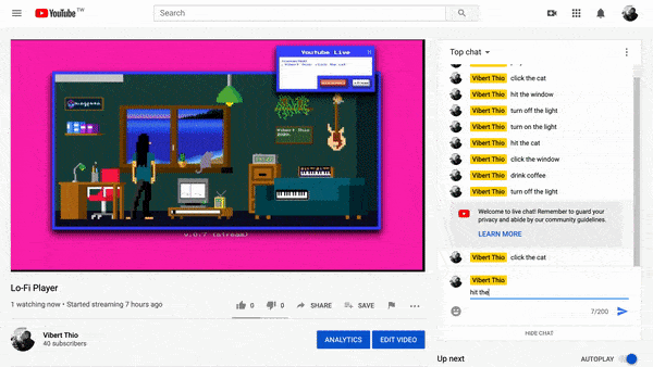 ويتضمن الإطلاق الأولي لمشغل لو-فاي أيضاً بثاً مباشراً تفاعلياً على موقع يوتيوب، حيث يمكن للمستخدمين كتابة الأوامر في نافذة الدردشة لتغيير الموسيقى. وتهدف الفكرة لجعل عملية تأليف الموسيقى تجربة أكثر جماعية، مع وضع الحجر الصحي في الاعتبار. ويقول دوج إيك، عالم الأبحاث الذي أشرف على المشروع: "يا له من شيء صغير للغاية يجمعنا معاً أثناء تفشي جائحة كوفيد".